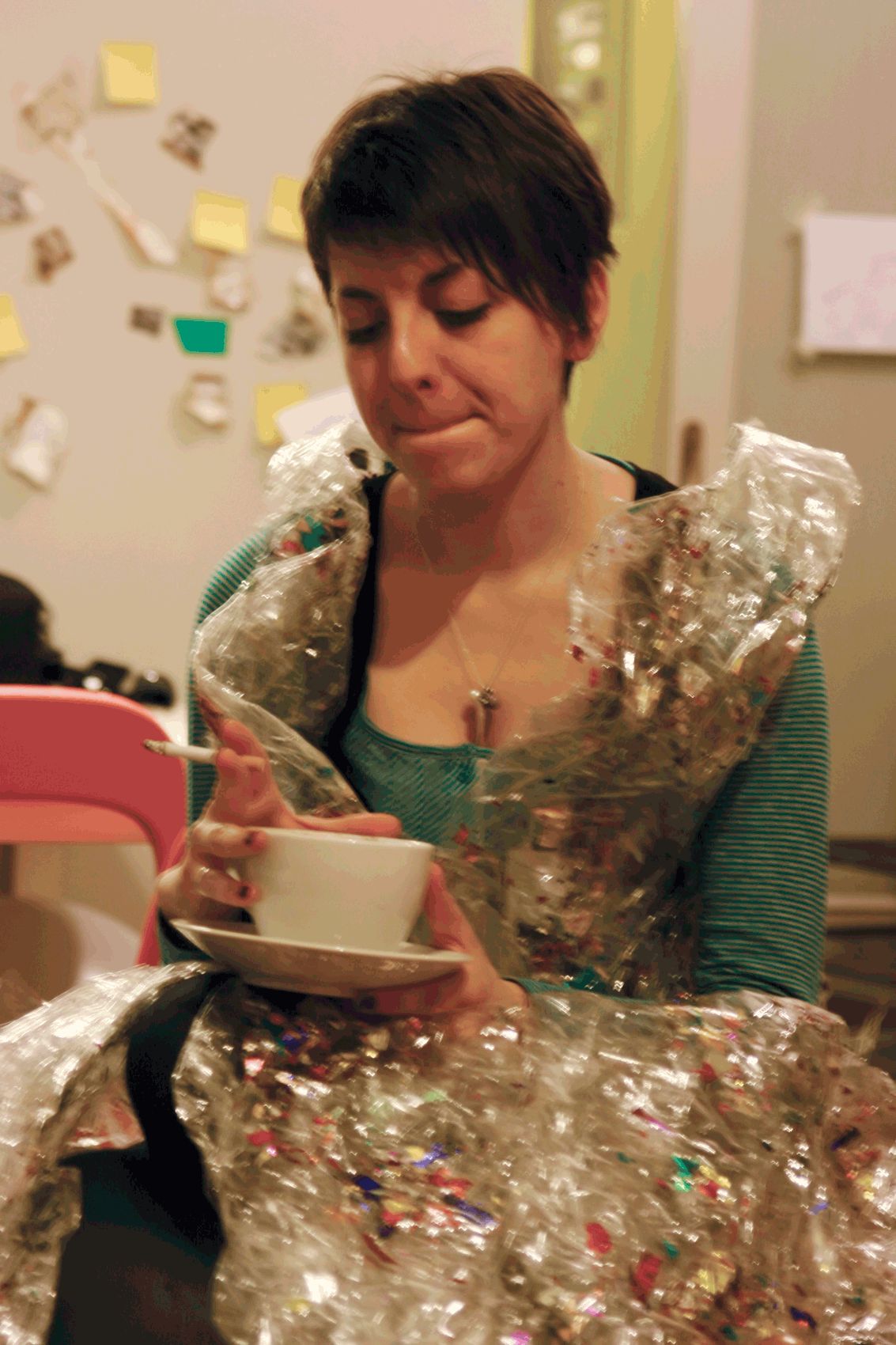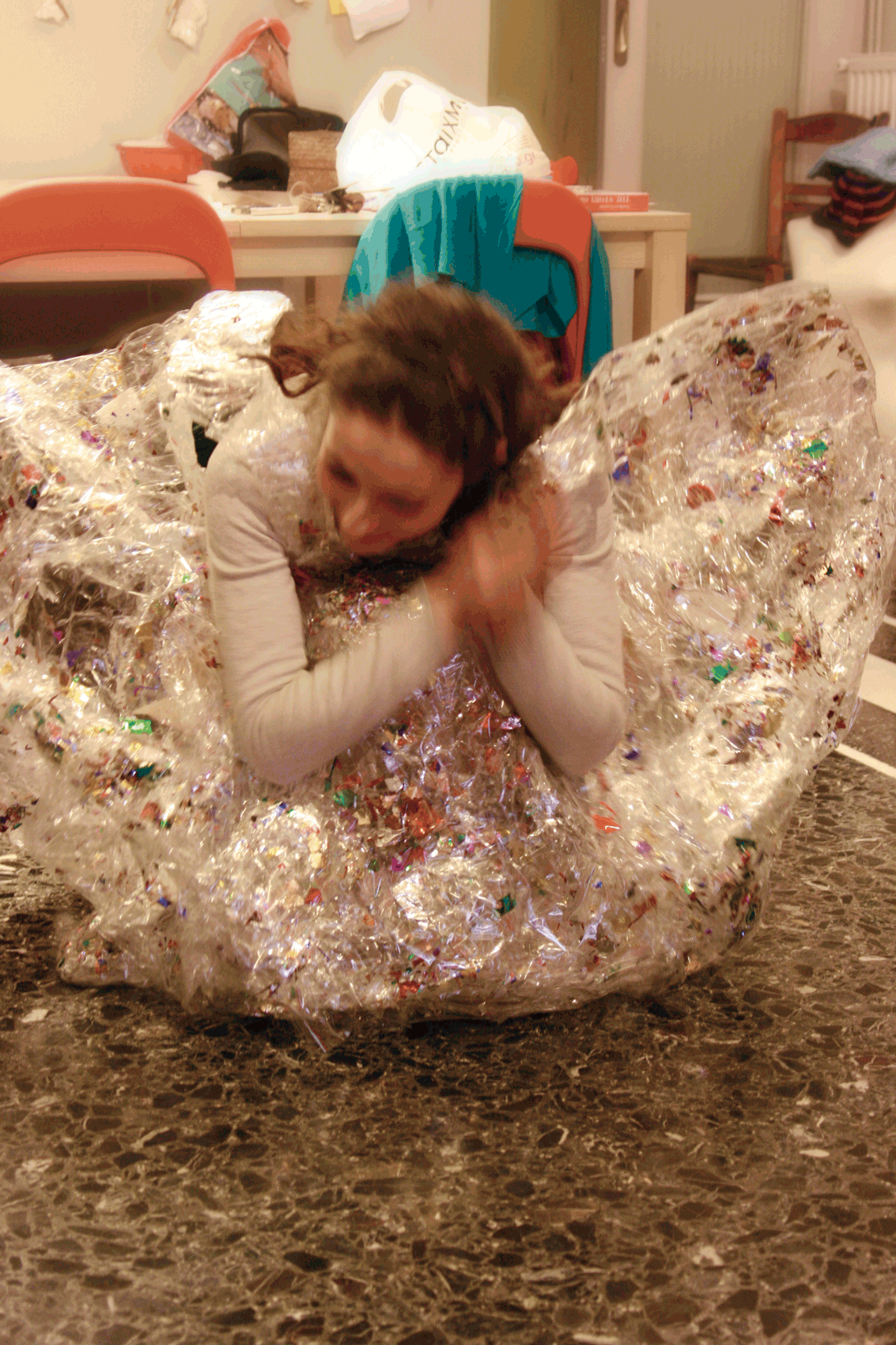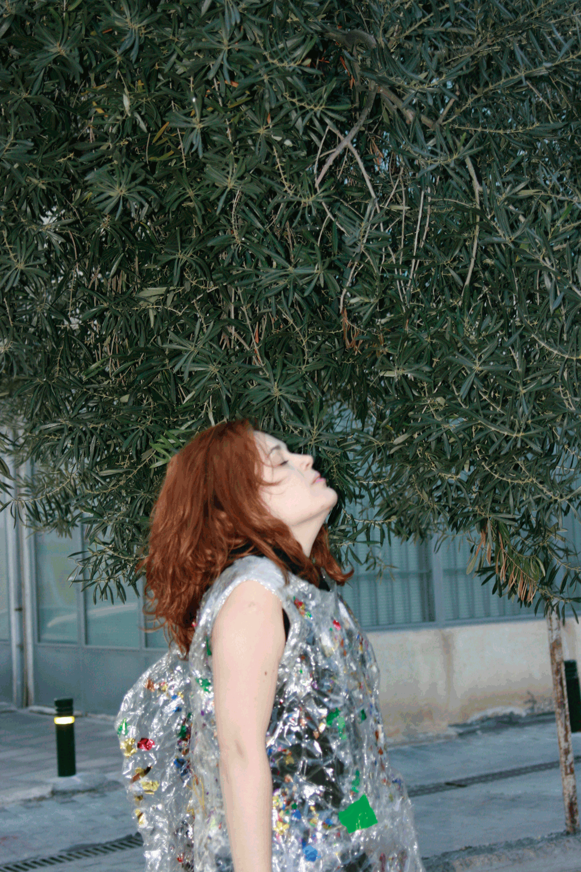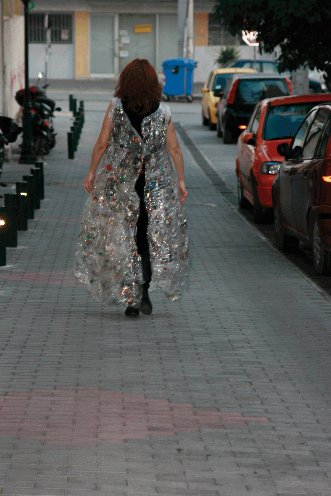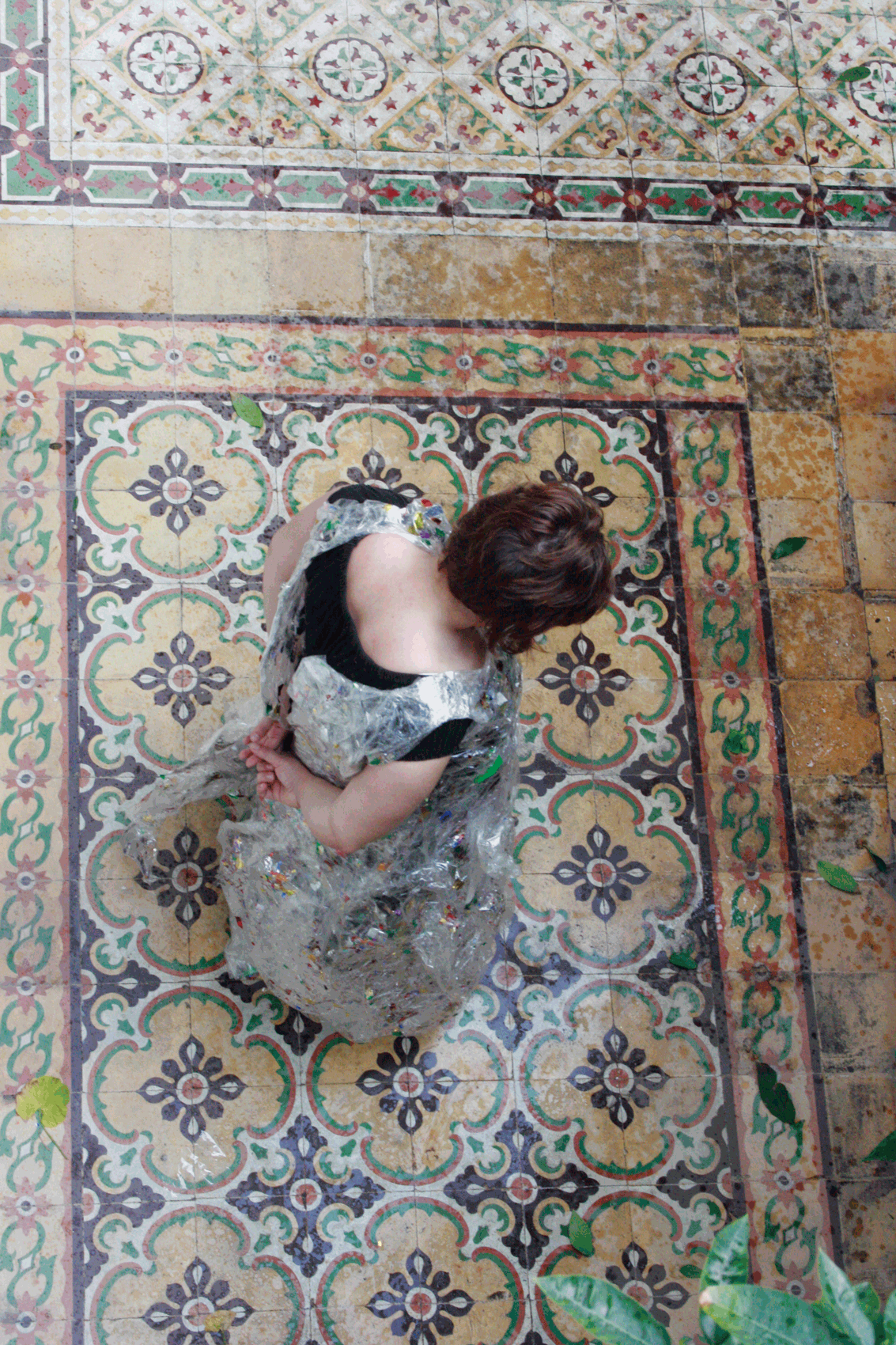 An invitation to different women to wear and perform the dress. A dress is a form is a dress. A dress in an on going transformation until it becomes a cave in a tree, a womb, a place safe where a single slow gesture of standing up is performed by the artist herself.