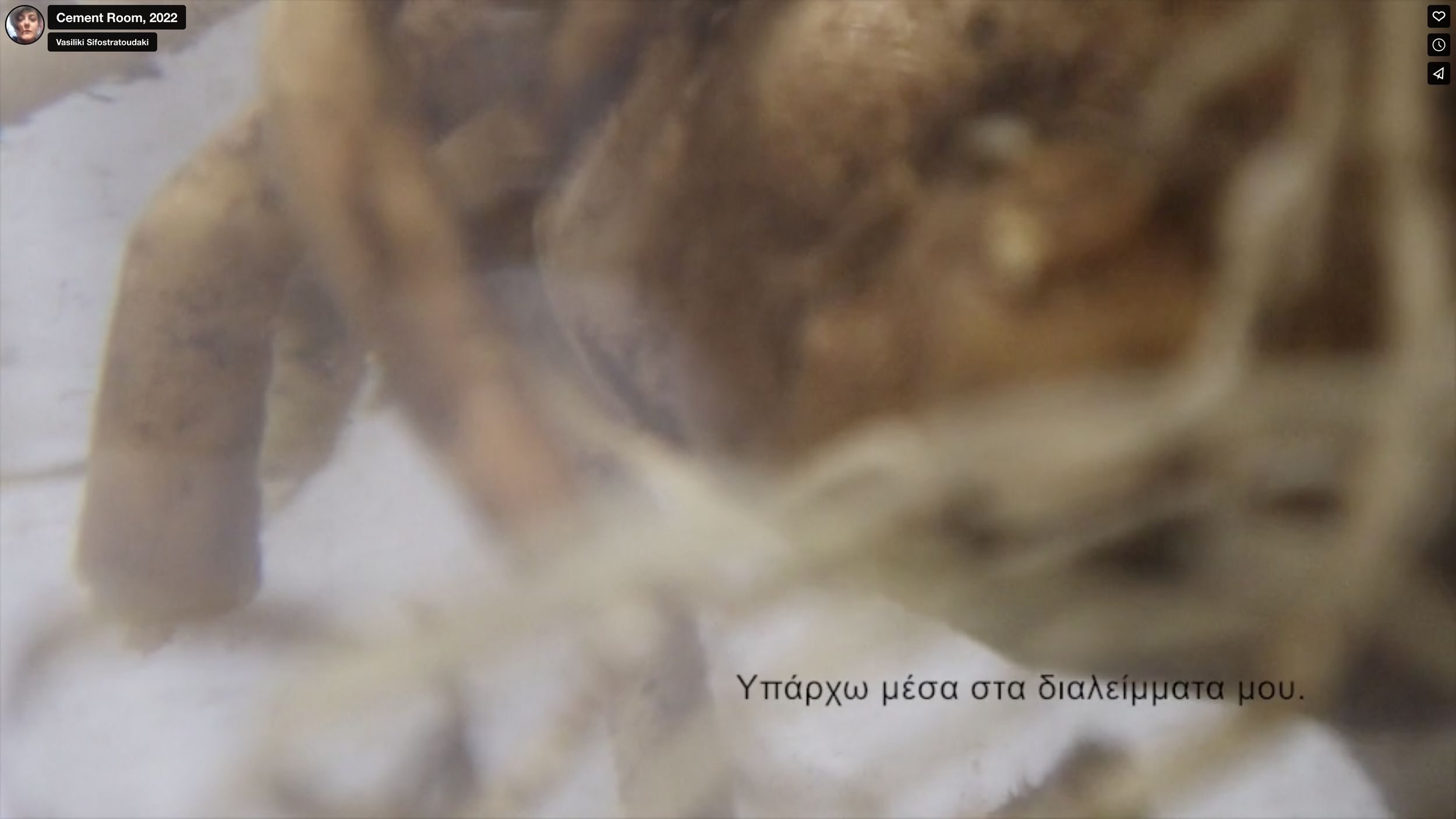 Υπάρχω μέσα στα διαλείμματα μου. Ο χρόνος φαίνεται ν’ αποτελείται από παύσεις. In between breaks I am. I appear and disappear. In my sleep I felt one. But I’m always scattered. Yellow Red Μωβ, οι κραυγές μου ακουμπούν τα βράχια. My body is made of unfired clay. I sunken in the ocean and waited. Εξαφανίζομαι και εμφανίζομαι. It feels so natural to fly … I was only surprised because I considered myself always to be a creare of the deep sea. Εξαφανίζομαι και εμφανίζομαι.
