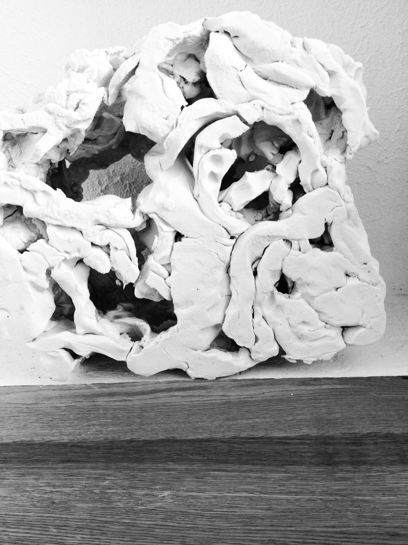 plaster, 50cmx50cmx 12 cm (inserted in between the tiles used as a possible pond for birds)