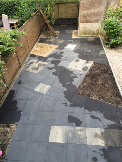 Cement tiles in two tones of grey that the impression or water remains even in dry days 60cmx60cm