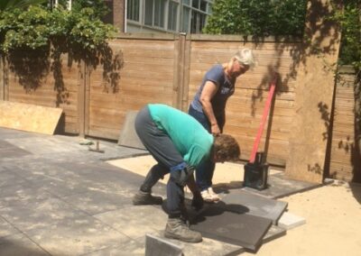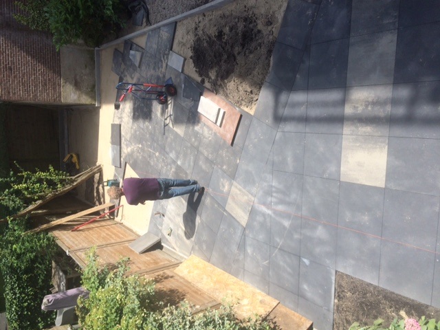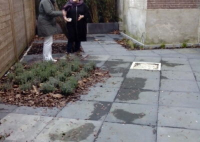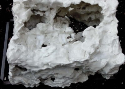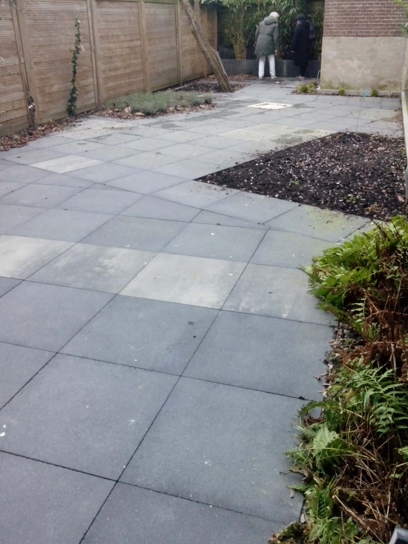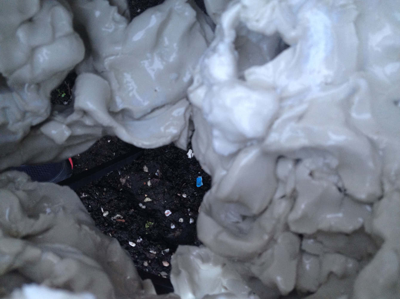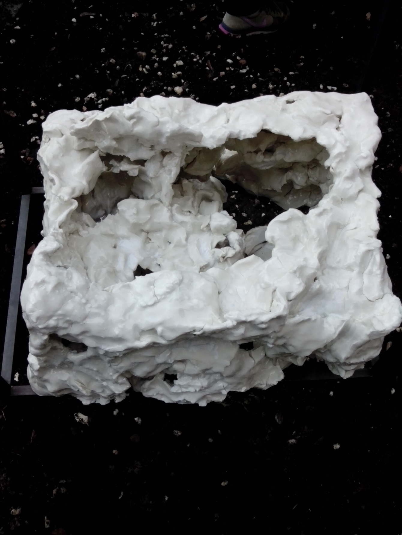 plaster, 50cmx50cmx 12 cm (inserted in between the tiles used as a possible pond for birds)